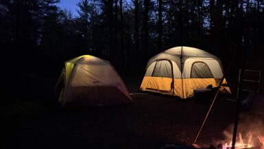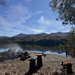 JJ and I returned to Moose Pond for another round of tent camping, this time armed with steaks, a drone, and perfect weather. The air was crisp but warm, the sky a flawless blue, and the pond shimmered like it remembered us. We grilled steak over the fire while the drone buzzed overhead, capturing sweeping shots of this beautiful land of the trees just starting to blush with autumn. It felt like a reunion with the wild—simple, satisfying, and just the right kind of quiet.